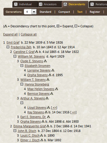 Also, once the descendants are displayed in this text format, you can show a graphic view (with photos)
